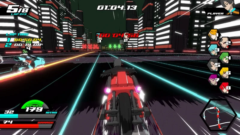 Визуальный стиль игры — просто фейерверк эмоций. Кислотные эффекты, вспышки и анимешные вставки заставляют улыбнуться, а иногда хочется надеть солнцезащитные очки даже ночью. Локации мелькают, будто кадры из снов после ночи в клубе. А если наскучит одиночество, мультиплеер всегда готов принять желающих сразиться в скорости и манге-диалогах. Система улучшений добавляет мотивации — никто не останется на обочине!