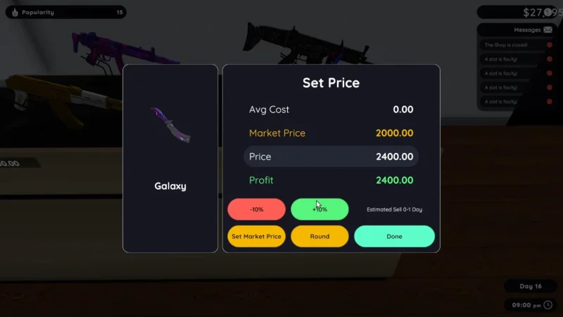 Рынок растёт, ваш подход ценят, а возможности не стоят на месте. Появился первый сотрудник - кладовщик, потом и кассир подтянулся. Новенькая система смены мишеней, автоматизированная станция для чистки оружия - жизнь становится проще, но за порядком следить не перестаёте. Стволы изнашиваются, гильзы послушно собираются, а мусор летит строго по раздельным бакам. Появляются заветные кейсы - откройте и радуйтесь необычным скинам, которые можно сбыть коллекционерам или выставить в своём мини-музее. Любой желающий оценит экзотическую "пушку" - и приток гостей обеспечен. Турниры, азарт, соперничество - докажите, что меткость и стратегия идут рука об руку. Меняйте цены, расширяйте витрину, удивляйте клиентов, ведь бизнес любит смелых и находчивых. Shooting Range Simulator - это не просто тир, это настоящая школа владельца собственного дела.