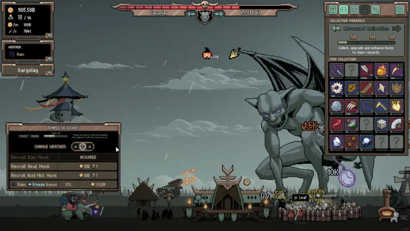Постепенно из простого лагеря рождается мощное королевство. Вы управляете городом: нанимаете советников, распределяете ресурсы и экипируете героев волшебными артефактами. Каждый предмет добавляет армии силы или приносит монету. Открывайте смертоносные баллисты, призывайте метеориты или овладевайте уникальными заклинаниями – всё это пригодится, когда боссы станут коварнее и опаснее. Чем выше уровень, тем сложнее находить выигрышные комбинации – но зато и победы становятся слаще. В игре вы можете играть активно или оставить прогресс на автопилоте. Автоматизация здесь сродни волшебству – ход игры продолжается, даже когда вы пьёте чай.
