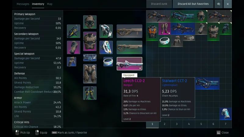 - Три вида оружия: дробовик, пулемёт, рельсотрон