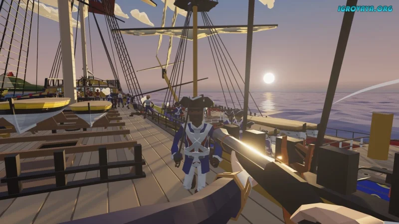В Buccaneers! вы отправитесь бороздить морские просторы на собственном судне, будто морской волк в поисках тайн и несметных богатств. Карибское море хранит не только затерянные клады, но и врагов, готовых сразиться за каждый дюйм акватории. Здесь побеждают не только силой, но и хитростью: планируйте атаки, крушите корабли, а если повезёт - возьмите их на абордаж или покорите форты, превращая враждебные земли в свои. Доступен целый флот - покупайте и улучшайте корабли, чтобы стать настоящим кошмаром для соперников. Не забывайте и про оружие! Вас ждут дуэли на мечах, мушкетах, пистолетах и даже гранатомётах. Ваш арсенал настолько широк, что враги не будут знать, чего ждать в следующий раз. Для тех, кто любит окунуться в пиратский быт с головой, Buccaneers! поддерживает виртуальную реальность: так даже управление судном или сражения станут ещё ярче. Здесь каждый найдет приключение по душе и сможет стать легендой Карибского моря!
